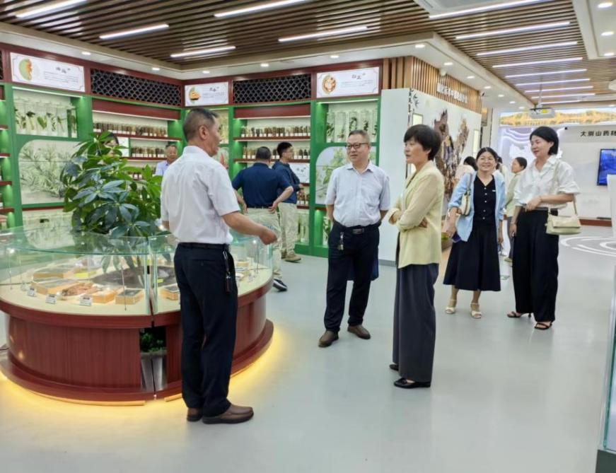 随后,段红燕一行参观了中药科技馆,他们在专业教师的带领下认真聆听讲解,并饶有兴趣地参观了中药文化、模拟药房、中药标本、VR体验等板块,他们对中药的多样性和丰富性表示赞叹,并就中药文化和用药知识与老师们进行了深入的交流。