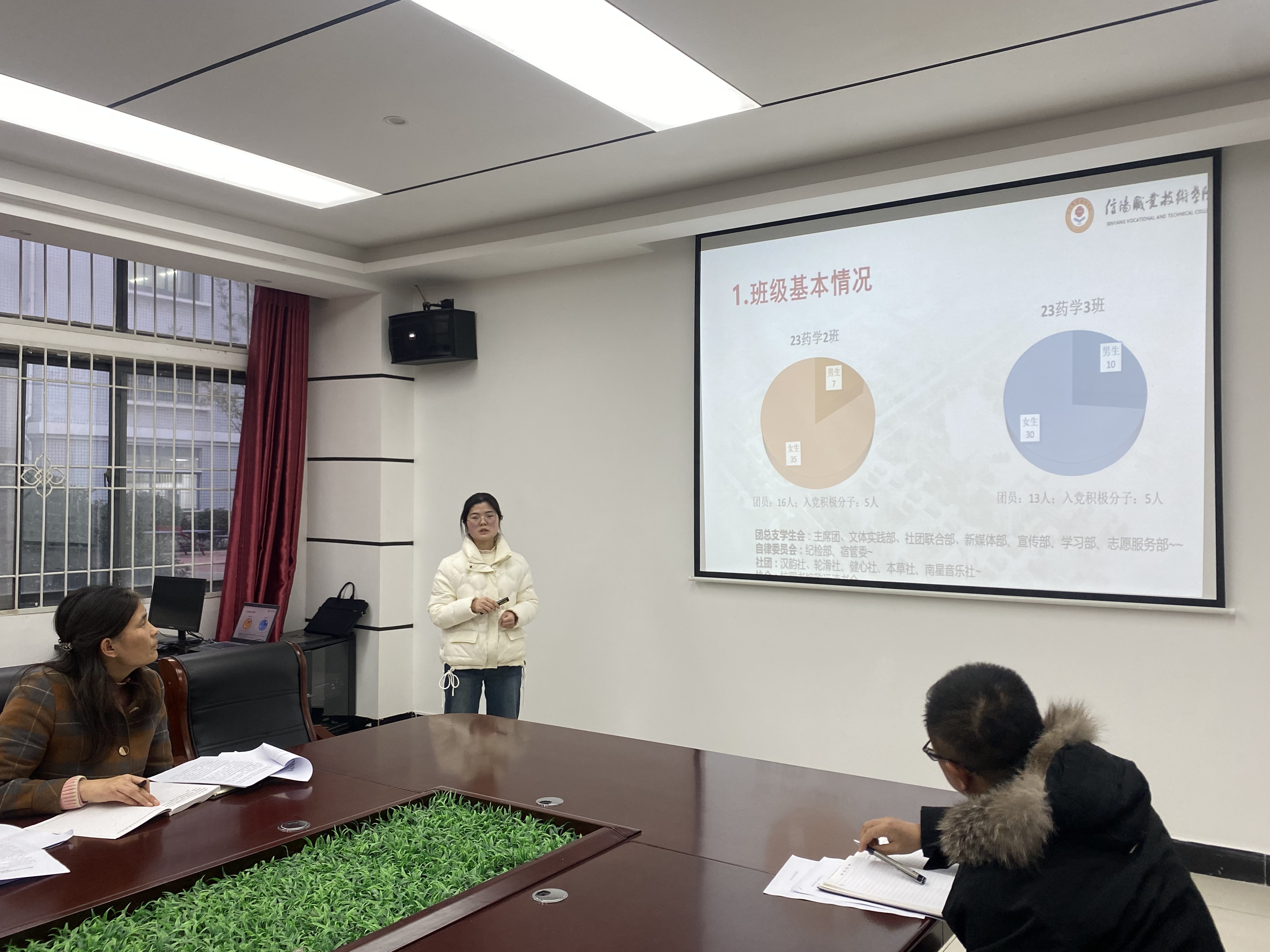 汇报会上,辅导员们按照文件要求,将各自负责班级的基本情况、班级建设经验、取得成效、存在问题及改进措施进行了介绍。辅导员们从学生的思想价值引领、党团建设、班级文化建设、学风建设等多个方面的深入讲解,展现了对学生情况的深入了解和对班级管理的独到见解,分享了自己在就业创业教育、心理健康教育、安全教育等方面的工作经验和取得的成效。同时,辅导员们也坦诚地指出了班级建设中尚存在的问题,并提出了切实可行的改进措施。