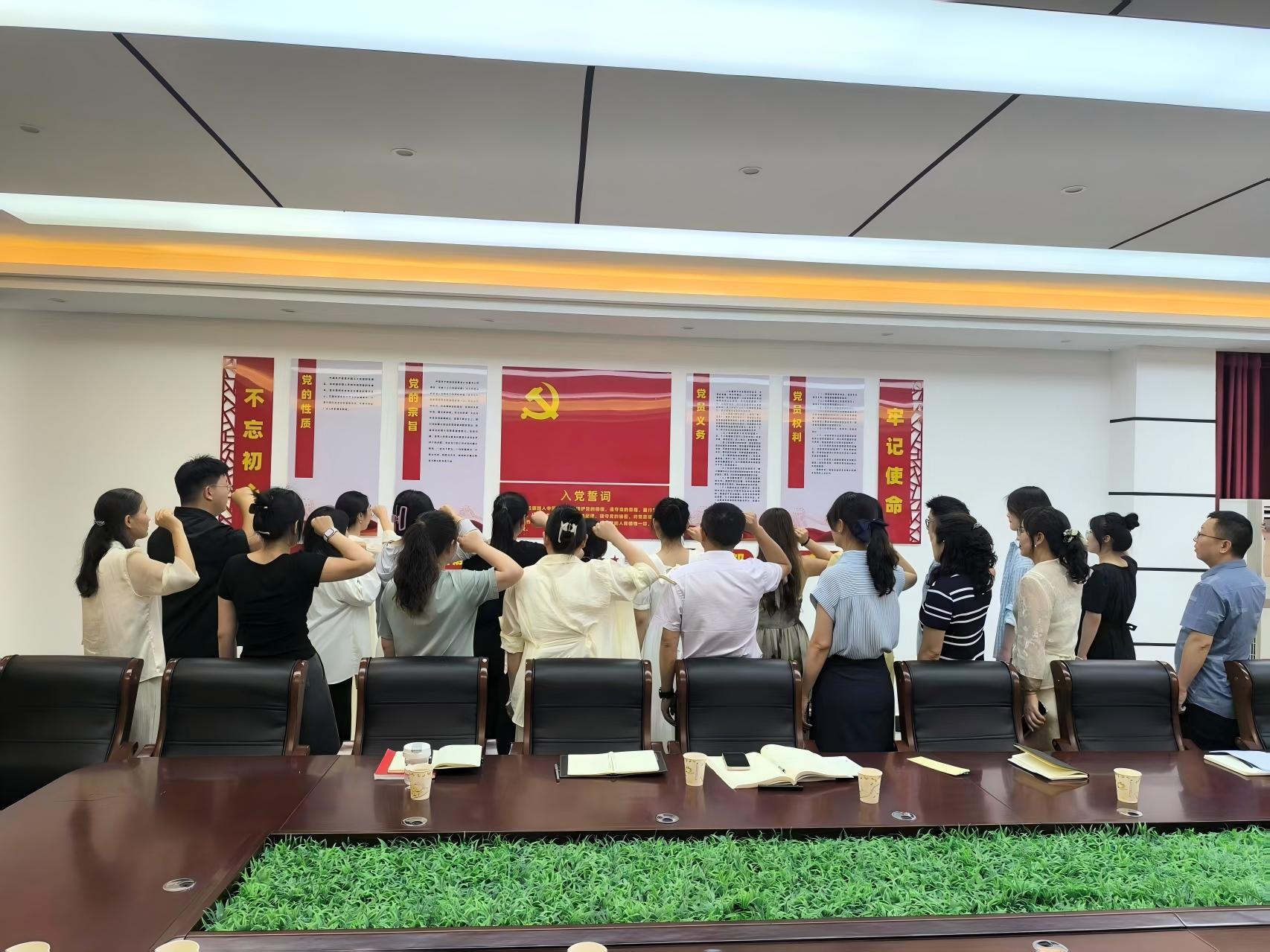 最后,全体党员面向党旗庄严宣誓,铿锵誓言彰显毕业生党员永葆初心、勇担使命的坚定信念。