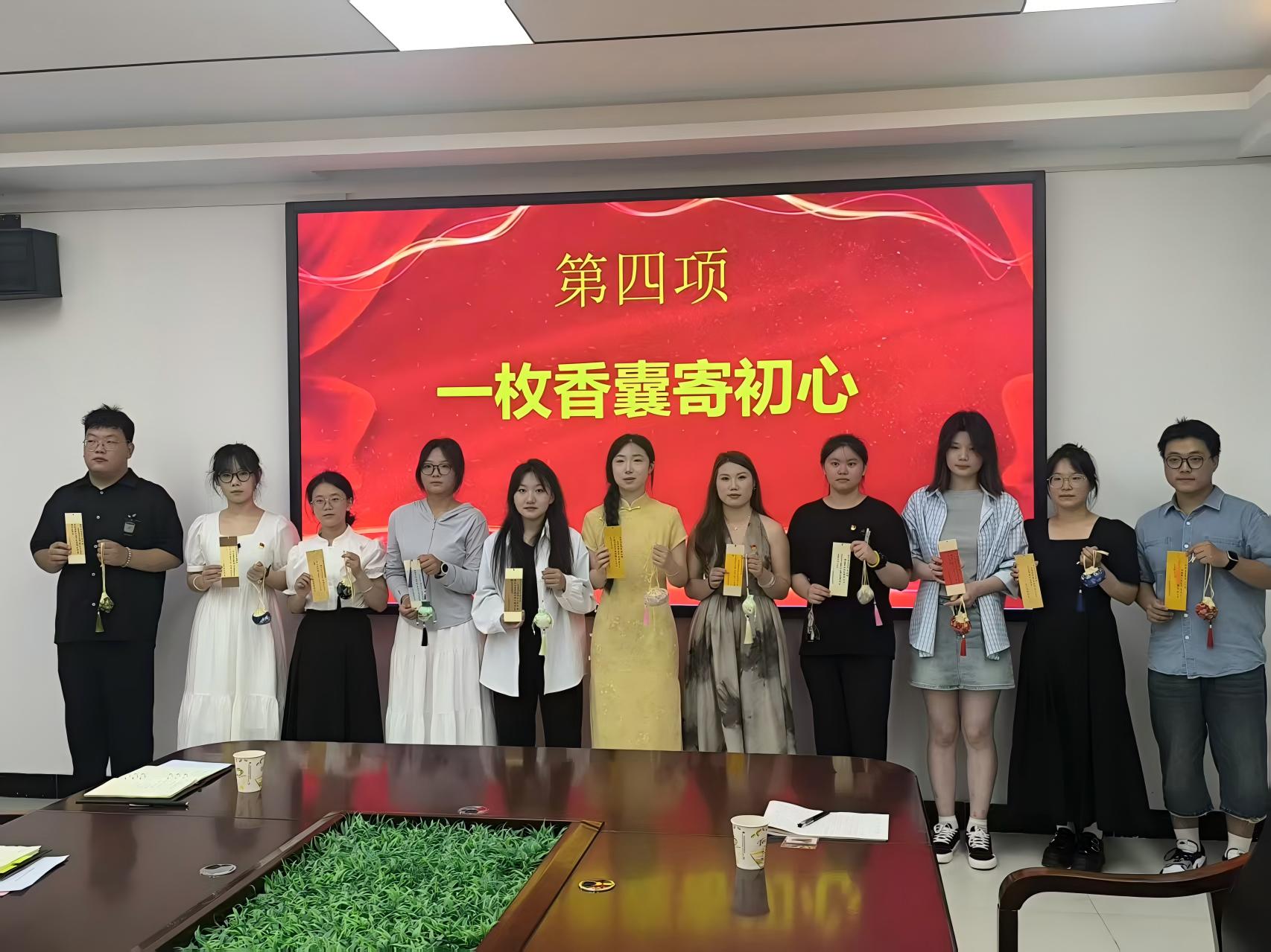 接下来,领导老师为毕业生党员赠送学院特制的中药香囊,表达美好祝愿,并合影留念,定格温暖瞬间。
