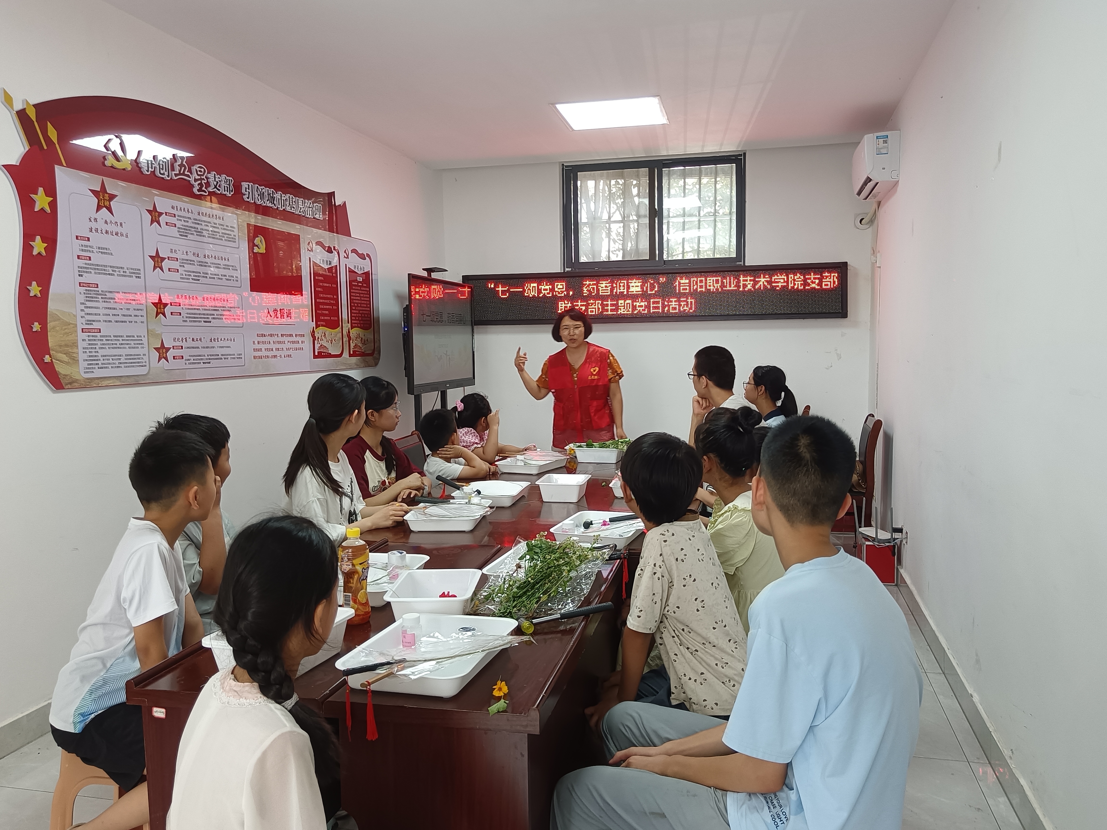 为弘扬中华优秀传统文化,丰富社区儿童文化生活,在中国共产党成立104周年之际,7月1日下午,太阳集团网tyc9728党总支携手义阳社区党支部开展“七一颂党恩,药香润童心”主题党日活动。