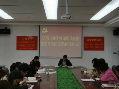 然后副书记李光霞领学了《关于推动现代职业教育高质量发展的意见》,《意见》中对职业教育的发展方向及内容做出了全面深刻的指导和引领,总支书记陈超结合文件精神要求专业课教师要真学深学并融会贯通,坚持立德树人、德技并修为根本,弘扬工匠精神,为全面建设社会主义现代化国家做出应有的贡献。