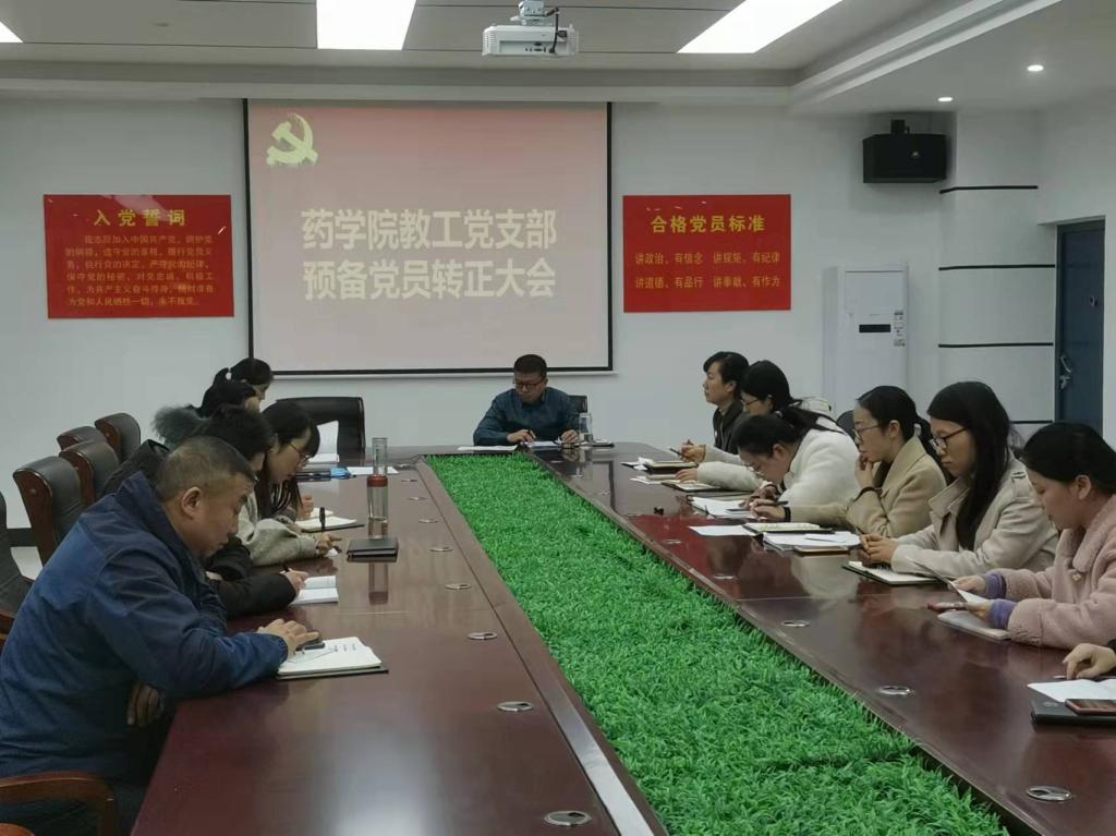 11月18日,太阳集团网tyc9728教工支部和学工支部在党员之家分别召开预备党员转正大会,太阳集团网tyc9728党总支书记陈超、副书记兼学工支部书记李光霞、教工支部书记樊轻亚和全体党员参加。