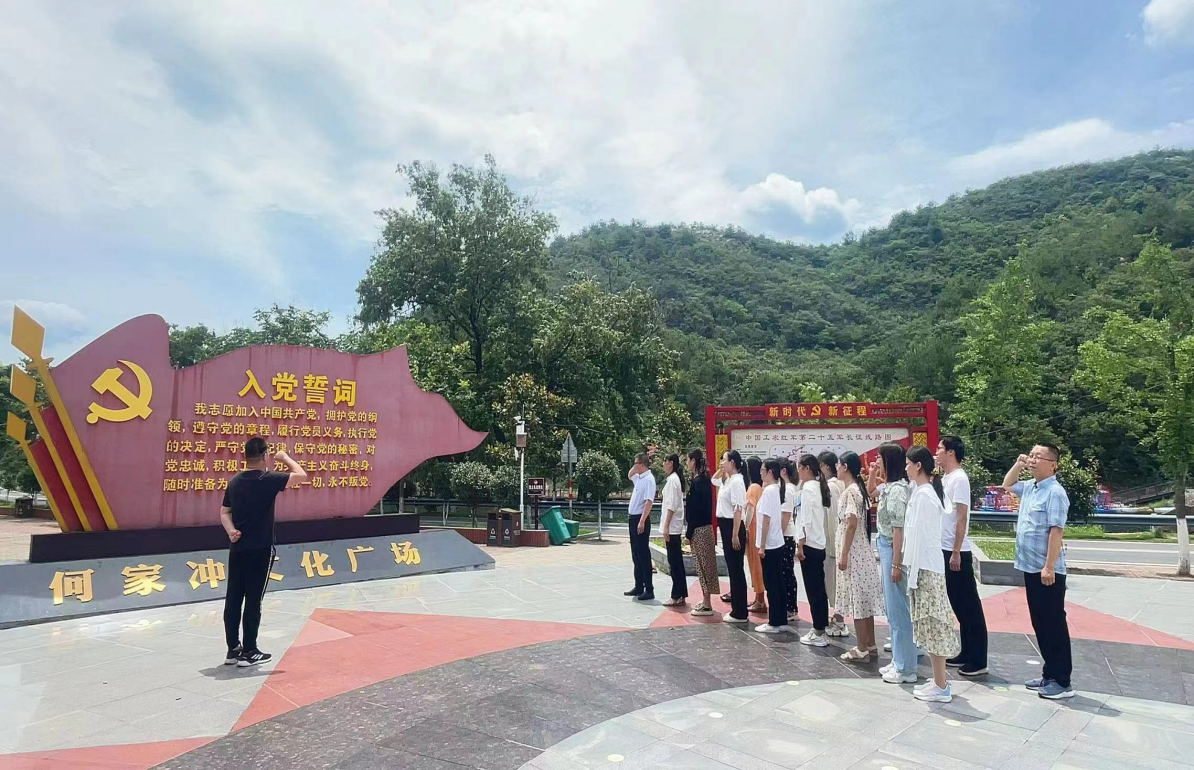 为庆祝中国共产党成立102周年,弘扬革命精神,传承红色基因,接受革命传统教育,6月28日,太阳集团网tyc9728党总支书记陈超、院长吴长忠带领全体教师党员、入党积极分子和学生代表前往何家冲二十五军长征出发地开展红色教育活动。