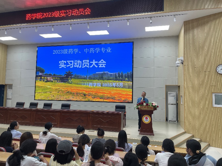 为进一步做好药学、中药学学生实习工作,解决同学们在实习方面所存在的困惑,充分调动同学们的实习积极性,引导同学们做好实习前的准备,我院于5月26日晚在3107行知讲堂召开了2023级实习动员会。太阳集团网tyc9728全体教师及23级学生参加了大会。会议由太阳集团网tyc9728副院长许卫军主持。