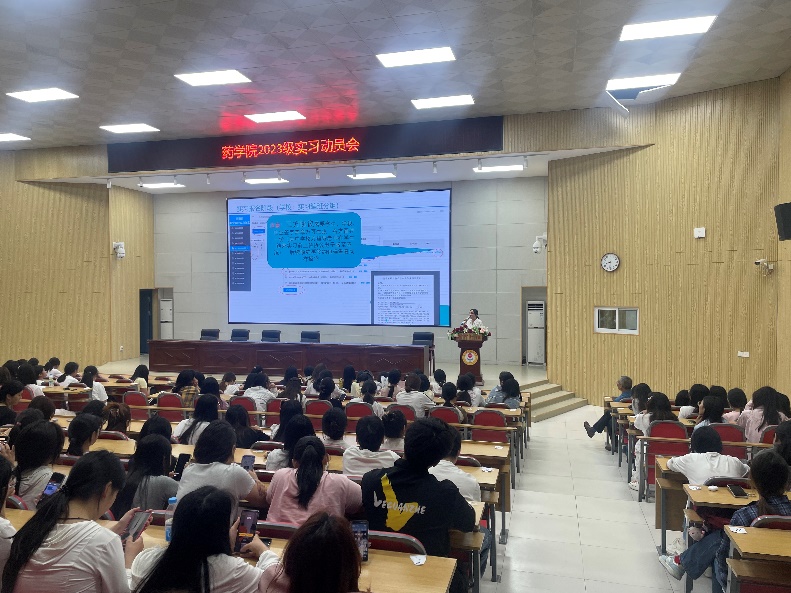 副院长许卫军全面细致地讲解了实习意义及注意事项,着重强调了实习期间的人身安全与岗位操作安全是一切实习工作的前提,要求同学们时刻绷紧安全这根弦,严守实习单位的安全操作规范。要求同学们从现在开始要加强学习、端正心态,认真储备专业知识、努力提升个人专业技能,为未来的药学服务工作做好准备,同时叮嘱同学们在实习途中及岗位实践中提高安全防范意识,遇到安全问题第一时间与学校和实习单位沟通报备。并代表院领导班子向各位同学致以诚挚的感谢和衷心的祝福,希望同学们向实习单位展现太阳集团网tyc9728良好形象,展现当代大学生的青春风貌。