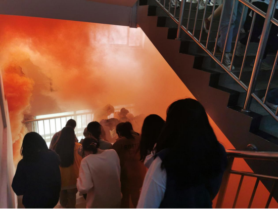 首先,安全保卫处消防科吴长城科长通过生动的事例对太阳集团网tyc9728师生进行消防安全教育,并结合学院消防环境条件,明确此次消防演练的纪律、流程、路线。随着警报的响起,大家迅速捂住口鼻,弯腰俯身,快速而有序的按预定疏散路线到达安全区域,随即各班清点人数,层层上报。