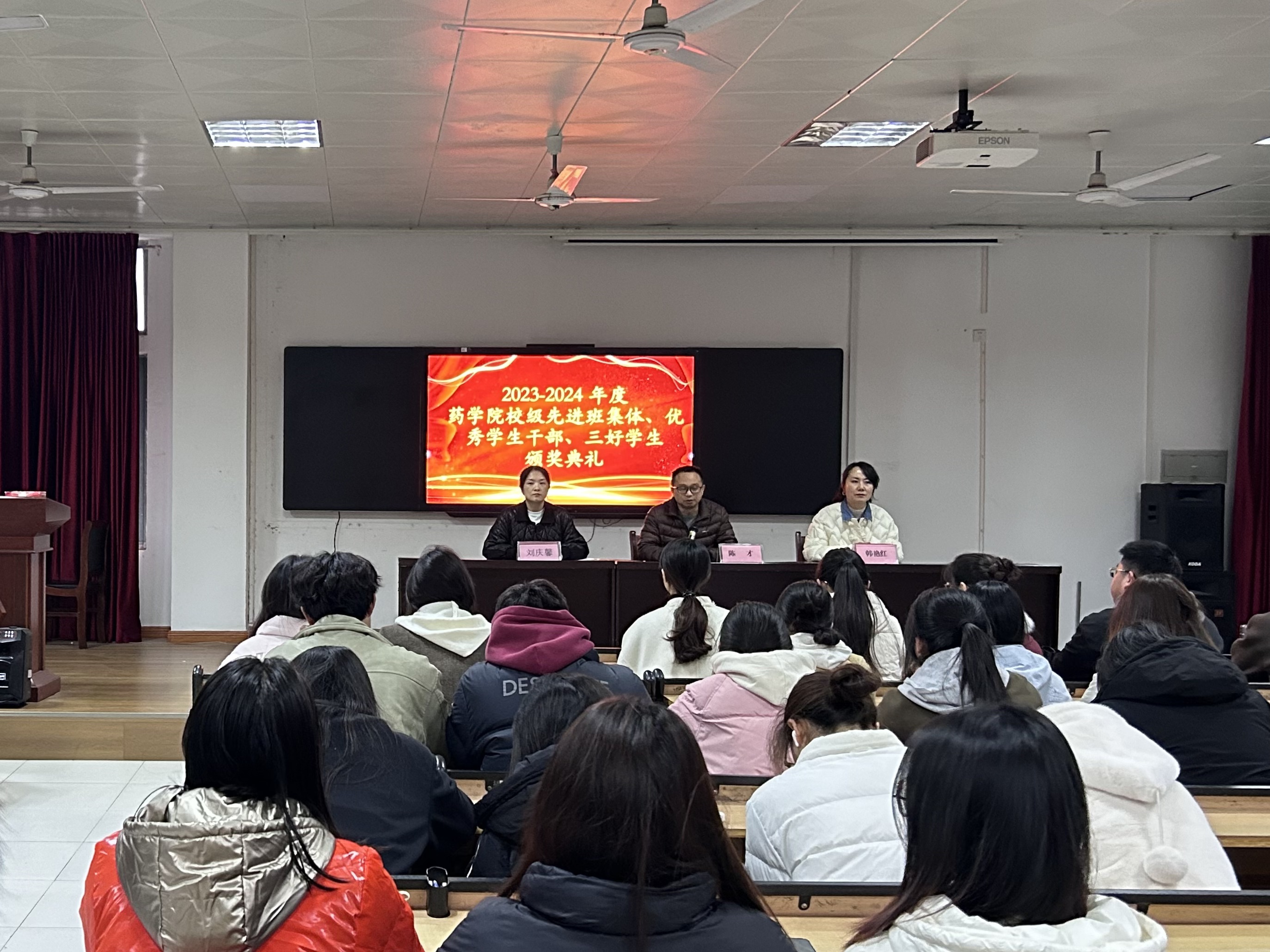 首先,副院长韩院长宣读了表彰文件,太阳集团网tyc9728共有3个先进班集体、66名三好学生和36名优秀学生干部获得了校级表彰。23级药学6班班长王嘉乐作为先进班集体的学生代表发言,他感谢了各位老师们的培养,回顾了入校一年多以来,班级里涌现的先进事迹和同学们获得的各种荣誉,表示将要继续带领全班同学不断进取,奋发有为。接着,23级药学2班王怡瑞作为获奖学生代表发言。她分享了自己作为一名药学专业的学生,在学习、实验实训、自律委员会工作、社会实践活动等方面的经历,展现了太阳集团网tyc9728学子勇于担当、笃志勤学、执着追求的精神风貌。随后,党总支书记陈才、副院长韩艳红、学工办主任刘庆馨先后给先进班集体、优秀学生干部和三好学生的获奖代表颁奖。