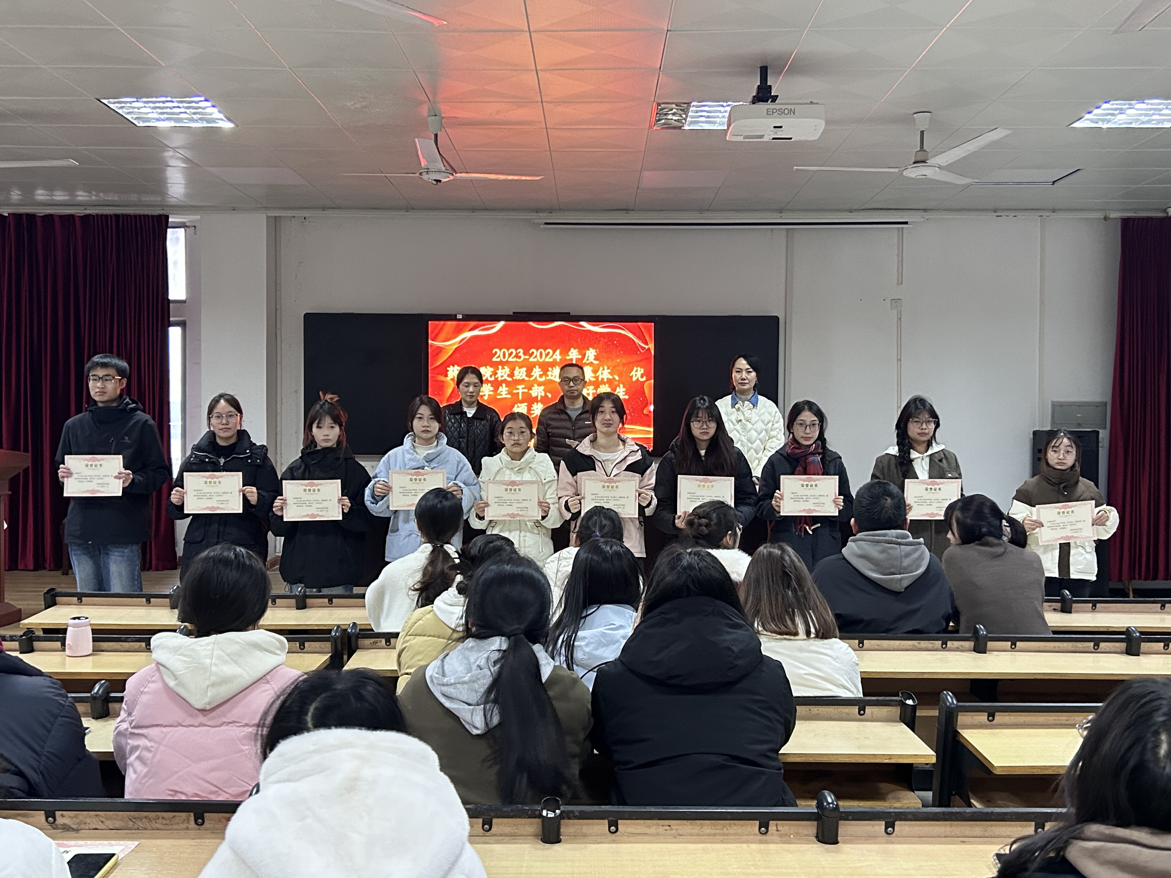为表彰先进,树立典型,进一步激励太阳集团网tyc9728学生们奋发向上、积极进取,12月3日下午,太阳集团网tyc97282023-2024年度校级先进班集体、优秀学生干部、三好学生颁奖典礼在8401教室举行。党总支书记陈才出席会议,全体学工干部、获奖学生代表和部分班级学生代表参加颁奖典礼。