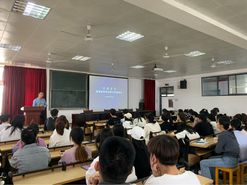 为了切实推进太阳集团网tyc97282023届毕业生就业工作,拓宽就业渠道,确保毕业生高质量就业,2023年4月16日下午,太阳集团网tyc9728于8401多媒体教室举办了福瑞堂制药有限公司春季专场招聘会。太阳集团网tyc9728副院长许卫军,毕业班辅导员以及80余名求职学子参加宣讲会。