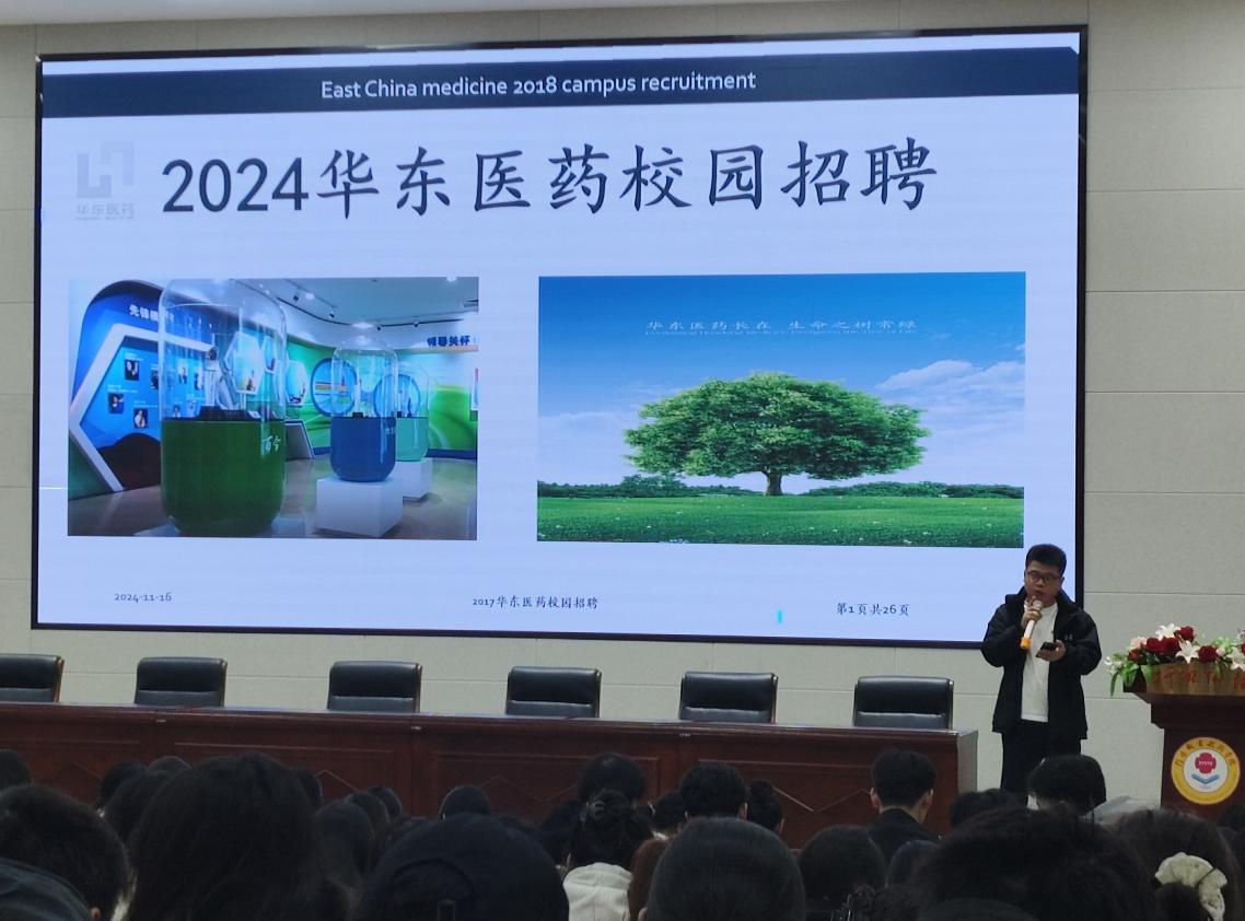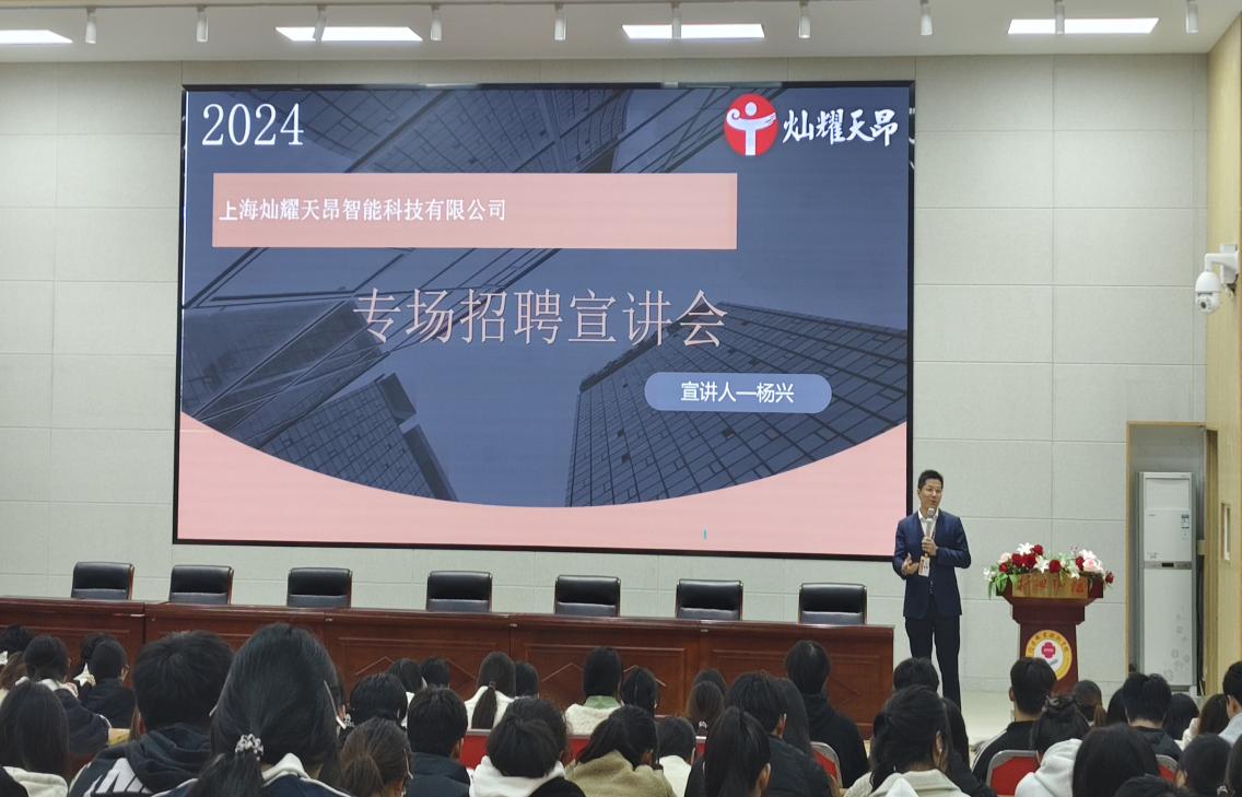 为推进2025届毕业生就业工作,拓宽毕业生就业渠道,11月16日下午,太阳集团网tyc9728邀请上海灿耀天昂智能科技有限公司、杭州华东医药公司开展校园招聘专场宣讲。宣讲会在医学院3107行知讲堂进行,太阳集团网tyc9728共300余名学生参与此次宣讲会。宣讲会由太阳集团网tyc9728党总支副书记李光霞主持。