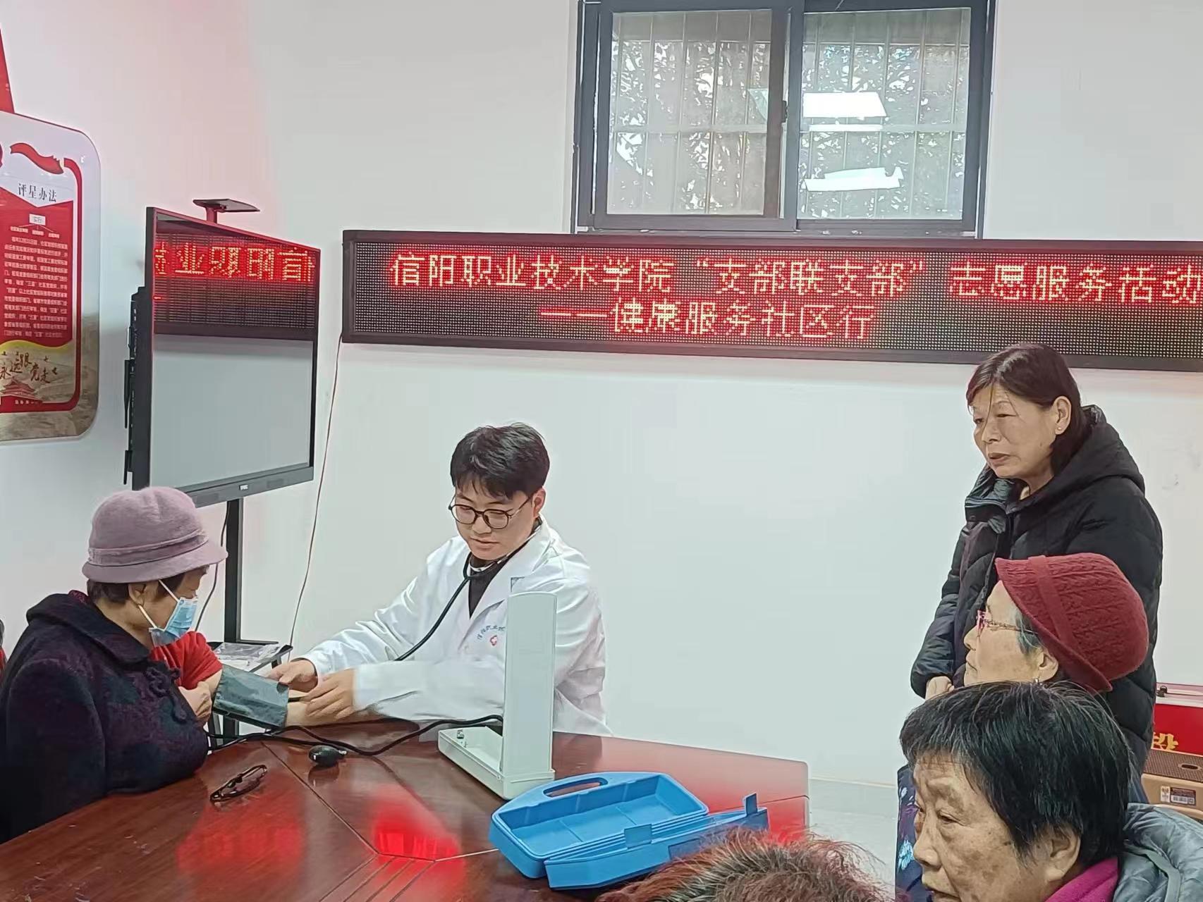 为扎实开展“支部联支部”活动,凝聚支部联建共建的强大合力,进一步推动第二批主题教育走深走实,激发广大师生的奋斗热情,11月14日,太阳集团网tyc9728党总支前往结对社区义阳社区开展“健康服务社区行”志愿服务活动,为社区老人冬季常见病防治和用药安全进行指导,倡导健康生活方式。